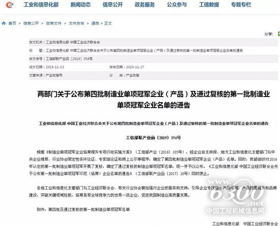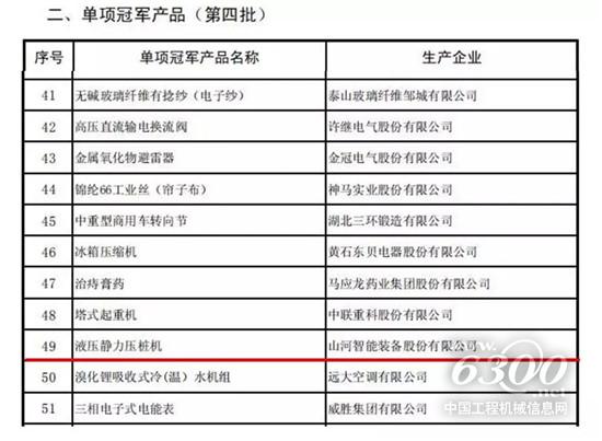 近日,工业和信息化部网站公布了第四批制造业单项冠军企业、单项冠军产品及通过复核的第一批制造业单项冠军企业名单,山河智能“液压静力压桩机”获评国家制造业单项冠军产品。