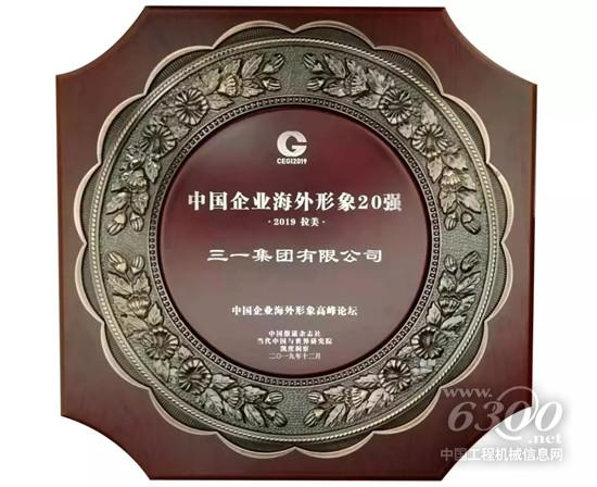 ▲三一集团有限公司荣获“2019中国企业海外形象20强”