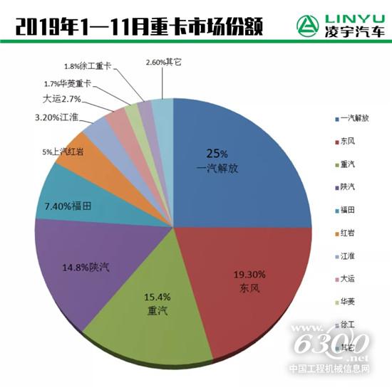 从最新数据可以看出,一汽解放11月份销售重卡1.75万辆,今年1-11月,解放重卡累计销售26.91万辆,同比增长7%,市场份额为25%,毋庸置疑,继续稳坐行业累计销量冠军宝座。