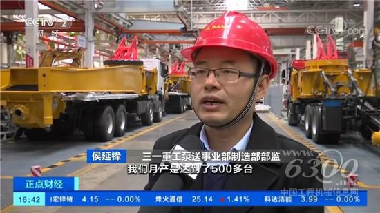 这里是三一重工的生产车间,在我身边的这条生产线上,工人们正在进行混凝土泵车最后的装配。