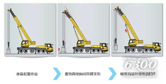 其中,“变幅补偿技术”,仅靠起重机的控制软件,就能精确计算吊臂起吊时的弯曲量,并通过变幅油缸的支撑,将弯曲量抵消,保证重物能够垂直向上起升,守护辅助工作者的人身安全。
