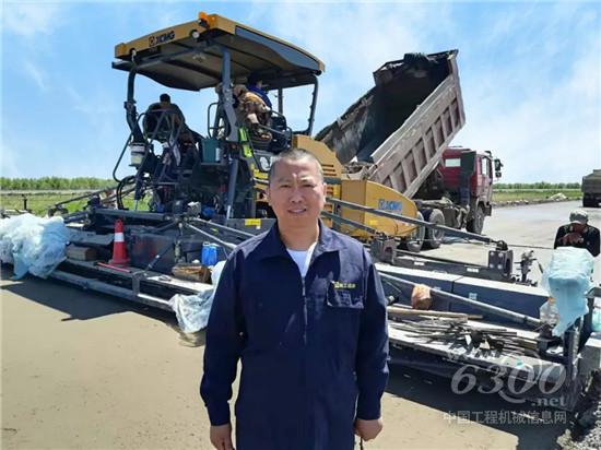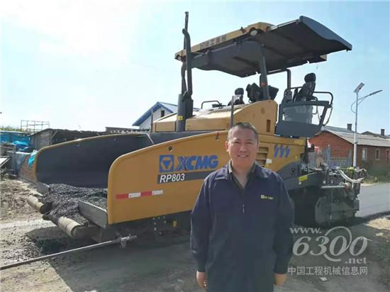 张红磊在徐工摊铺机前的合影