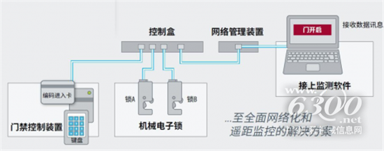 图片说明:电子门禁的开关数据通过安全网络直接实时输送管理者的指定监控系统