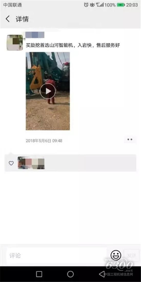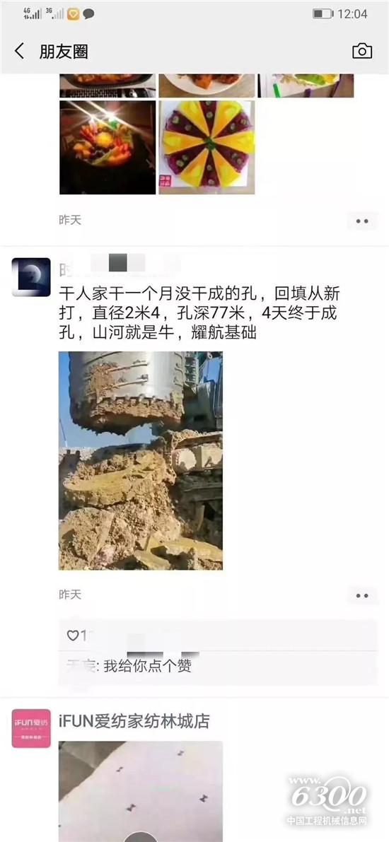 各地客户不约而同在自家朋友圈,为山河智能旋挖钻机的出色表现点赞。