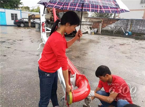 阿才在车场清理末端弯管时,眼看着天要下雨,陈木兰马上跑到楼上拿来雨伞,为阿才撑开。引得车场其他司机一片羡慕,“阿才,你小子可是娶了个好老婆,我老婆要是能给我撑伞,我一天干二十四个小时都愿意。”是啊,不羡鸳鸯不羡仙,只羡阿才有木兰。“你们徐工62米V7,臂架真的很稳,操作起来也简单,我上手了几天都可以独立操控了!”陈木兰满脸自豪地说到。不求大富大贵,只要稳稳的幸福!工地上的陈木兰,支车,打泵,协调工地一点都不含糊。实心的垫木抱起来就走,人如其名,泵工中的花木兰,工地上的穆桂英!
