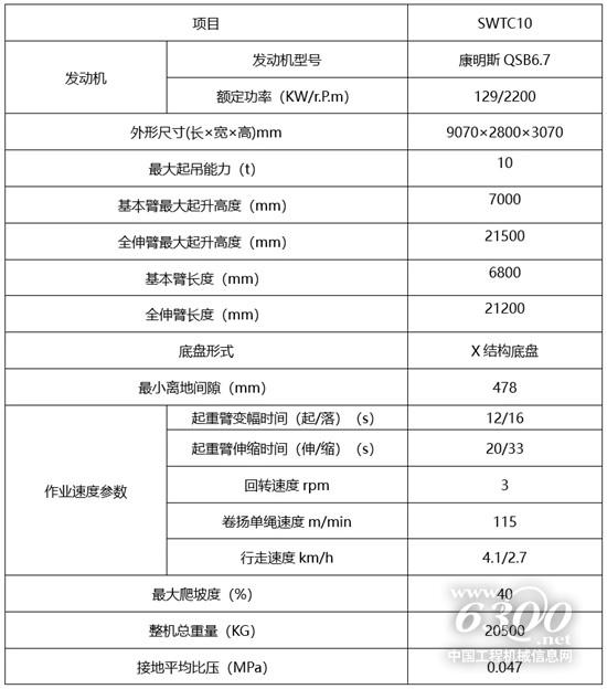 SWTC10伸缩臂履带起重机设计为4节主臂,十边形截面的高强度结构,全伸长21.2米,在同吨位产品中起重性能更强;配置的康明斯欧五发动机,满足欧洲目前最新的排放标准,故可在国外众多发达国家销售;液压系统采用负载敏感带阀后补偿功能技术,可实现多种复合动作,作业效率高;采用液压先导控制,操作灵敏,微动性好;电气系统采用CAN总线技术,发动机状态监测,力矩限制系统有两种配置(赫斯曼、瑞高怀力)可供选择,实时监控作业工况,保证作业安全。