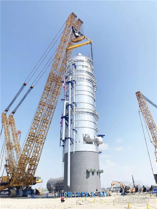 2019年7月22日上午,轻烃回收装置脱异丁烷塔就位,徐工XGC88000“世界第一吊”完成中科项目的最后一吊!