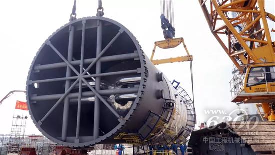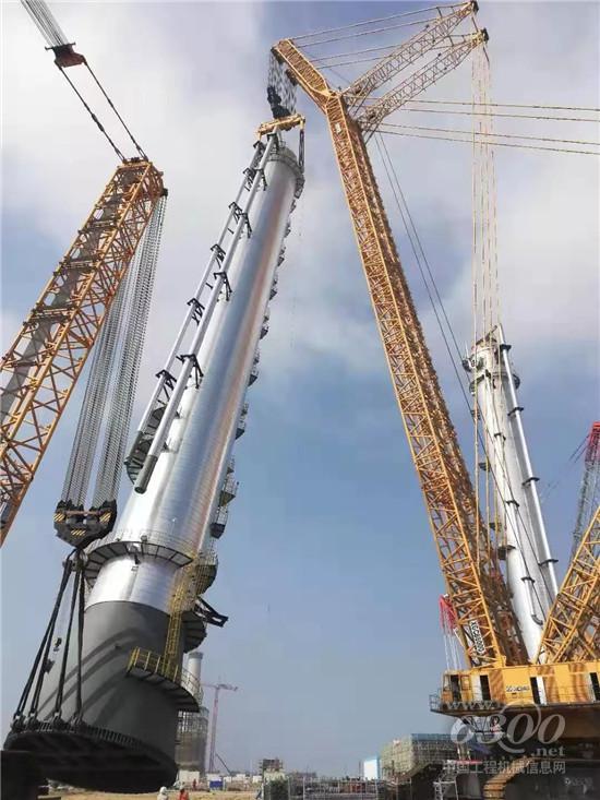 该项目的第4台超大型塔设为位于乙烯装置热的1#丙烯塔。12月16日上午徐工XGC88000(4000吨)履带起重机与500吨履带起重机,将1#丙烯塔水平抬起交给安装单位安装剩余附件,12月17日,古雷炼化一体化项目乙烯装置建设现场,4000吨履带吊成功将1#丙烯塔吊装就位。