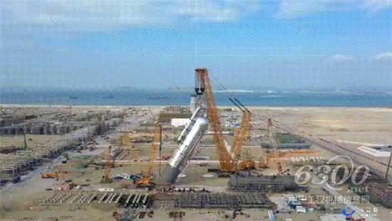 2019年年初,中科炼化一体化项目最大设备(乙烯2号丙烯塔)建设安装现场,“世界第一吊”挑战海岛炼化项目设备体积最大、高度最高,吊装难度最大、吊装要求也最高的千吨级乙烯2号丙烯塔吊装。