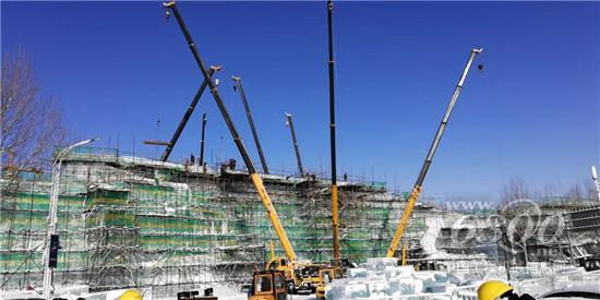 据了解,第21届哈尔滨冰雪大世界在2019年12月初开始取冰造景,无数块长1.6米,宽0.8米,高0.5米,重达一吨的冰块被源源不断运送至施工现场。本届,XCT25、QY25K5-1、QY70k-1在内的50多台徐工起重设备现场效力。