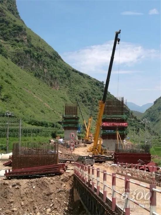 QY25K5-1携QY30K5,QY20K5大小兄弟,云南省华丽高速马过河隧道桥,马过河隧道桥施工难度大,跨距长,项目的完成将成为高原山区施工的经典工程。
