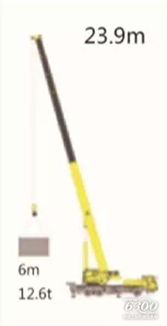 超大筒径的吊臂,臂长34.2m,22m幅度 ,吊重2.8t。
