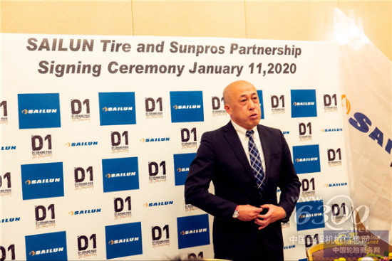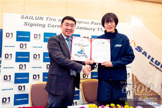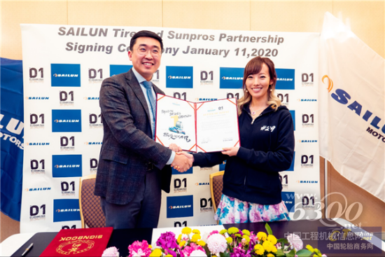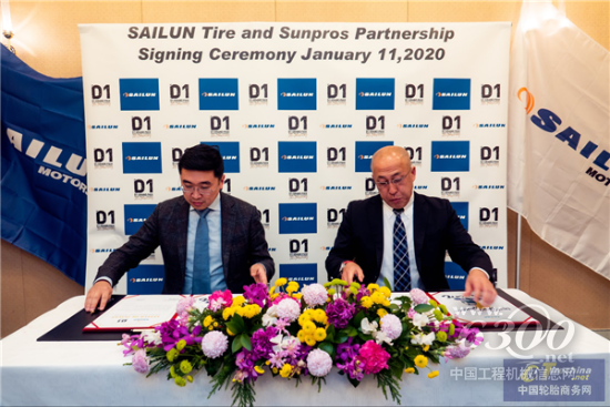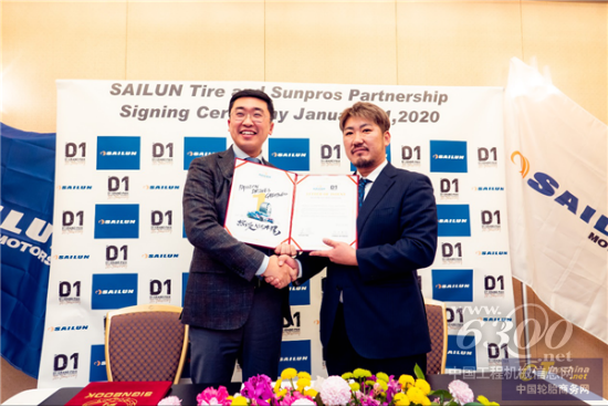 2020年1月11日,东京改装展(Tokyo Auto Salon)期间,赛轮集团与日本著名飘移赛事D1GP举行签约仪式,赛轮轮胎成为D1GP官方战略合作伙伴及D1官方轮胎供应商。SUNPROS日本株式会社齋田社长、赛轮集团副总裁袁嵩博士、赛轮集团总裁助理 亚太区总监汪久尚、赛轮集团运动轮胎销售总监陈峥,日本著名飘移车手日比野哲也先生、内海彰乃先生、畑中真吾先生、上野高广先生、田中省己先生、栗野如月女士、三浦庆先生(Rocket bunny、Pandem创始人,全球汽车改装大师)和国内自媒体大咖溜溜哥等出席了本次签约仪式。