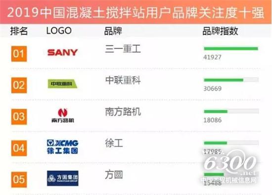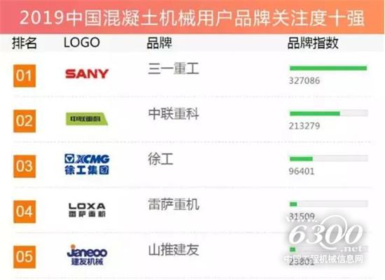 同时,在挖掘机械、混凝土机械、旋挖钻机、沥青摊铺机、搅拌运输车、混凝土搅拌站的6大工程机械分榜单中,三一的品牌关注度排名行业第一。