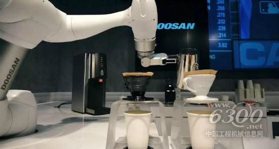 有趣的是,在斗山展位上,斗山机器人科技的协同机器人与DJ一起进行了炫酷的广告表演,吸引了大量观众驻足观看。“协作机器人调酒师”还为观众制作了滴滤咖啡 。