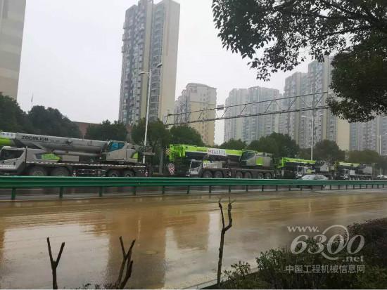 与此同时,中联重科工程起重机也于24日上午在项目指挥部集结完毕。中联重科客户、本次项目吊装工程主要施工方——武汉文伟吊装有限公司出动了7台中联重科起重机:300吨1台,130吨1台,80吨2台,55吨1台,25吨2台,设备将待建设材料进场后第一时间进行吊装作业。接到这份意义重大的任务,中联重科湖北分公司高度重视,成立专项项目组,调集多位经验丰富的服务工程师24小时值班,为项目建设保驾护航。