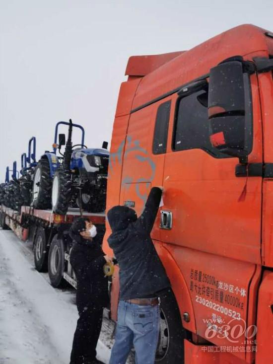 2月21日,天空正飘着雪花,阿荣旗农机中心工作人员早早来到阿荣旗高速收费站,他们按照旗新冠疫情防控指挥部的要求,在这里等候运输雷沃阿波斯农业装备车辆的到来。车辆刚出收费站,工作人员就急忙上前,在进入阿荣旗的第一时间对车辆和车内人员进行全面监管、报备,封闭驾驶室,在车门处贴上封条,并对全车进行消毒,避免了病毒传播的风险。