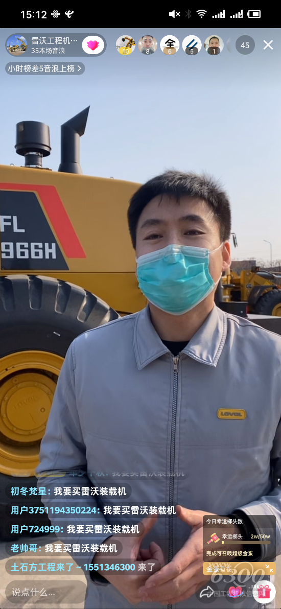 在按下复工“启动键”后,雷沃工程机械营销将士也已抵达工作地点,在保障防疫安全的前提下,贯彻执行“产品驱动、服务先行、竞争取胜”的营销方针,线下营销未雨绸缪,线上营销早已火热进行,通过立体式在线看车、细节展示、产品讲解、用户答疑等环节,打造沉浸式的直播情景体验,让用户对产品有了更加全面和细致的了解,为用户提供线上订机,线下提机服务。