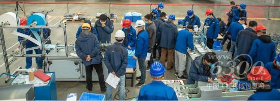 特殊时期,时间就是生命。口罩机研发生产所涉各部门通力配合、全力突击:基础装备事业部研究总院第一研究院承担设计工作;特装车间承担生产制造工作;威沃承担结构件生产、零部件加工,一条条口罩生产线逐渐成形。
