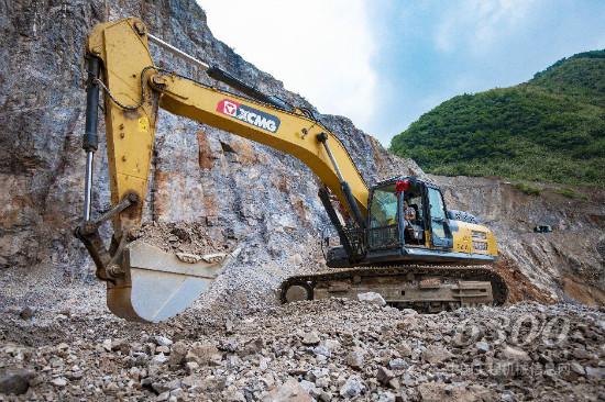 在广东惠州,群山环绕中,几台徐工XE370DK挖掘机和几名工人正在紧张而忙碌的进行着矿山开采工作。惠州矿山以火山岩为主,这种岩石被广泛应用于建筑、水利等领域,在各行各业中起着无法替代的作用。然而火山岩质量轻、硬度高,开采难度巨大。面对恶劣工况,“靠谱”的徐工挖掘机成了当地矿山开采的首选品牌。