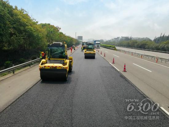 现场所在标段徐工成套设备有:RP903摊铺机、XD133C双钢轮压路机、XP303KS轮胎压路机、XMR303轻型压路机……共同携手助力沈海高速路面改造,在工地上可谓是异常瞩目,引来大批行业人士参观学习。