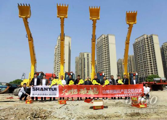 4月份江苏市场需求延续火爆态势,山推挖掘机依旧供不应求,运载着7台山推SE215-9A挖掘机的大型拖车一字排开,依次从厂内出发运往无锡,于4月26日运抵并交付大客户,7台山推“大黄”开始投身于无锡城市建设之路中。