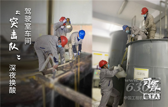 4月4日零点,驾驶室车间党员带头、班长为主、质检配合组成15人“换酸突击队”,按照预定计划分工,轮番上岗,默契配合,进行排酸、清渣、加酸、升温、酸液中和处理、检验等工作。6个小时内完成了排、加酸50m³、清渣0.5t,加中和物料0.5t的换酸任务,保证了白班人员早晨8点正常接班生产。