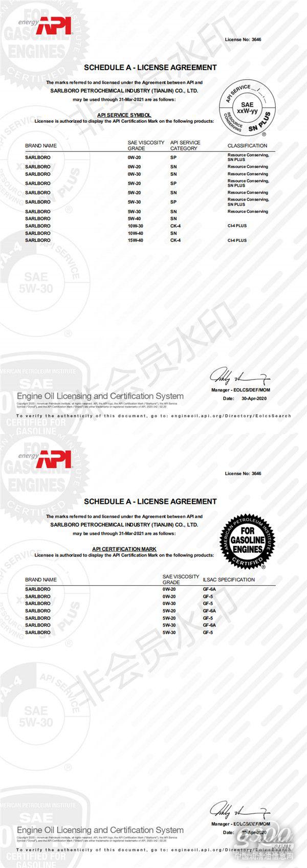 2020年5月1日,API(美国石油协会)正式面向全球发布API SP/GF-6汽油机油规格技术认可。该规格历时10年开发完成,正式取代API SN/GF-5 Plus规格成为全球质量级别最高的汽油机油规格。圣保路润滑油凭借国际领先的润滑技术研发实力,第一时间通过认证,成为国际首批获得此认证的润滑油企业。