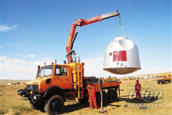 从2005年的神舟六号开始,直到今天的新一代载人飞船,飞船的返回舱回收作业,一直由这台随车起重机完成。