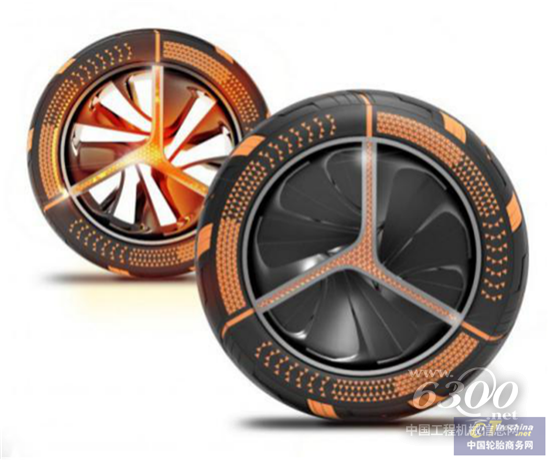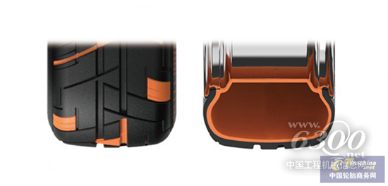 特殊花纹胎体结构设计——胎面设计具有特殊花纹的摩擦纤维,相连的密闭胎内部埋入可导电通磁的结构与感测元件。