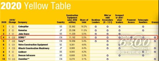 5月18日,全球最具权威的工程机械信息提供商——英国KHL集团发布了2020年全球工程机械制造商50强排行榜(2020 Yellow Table),徐工由去年的第六位跃居第四位,始终领跑中国企业,跻身全球第一阵营。