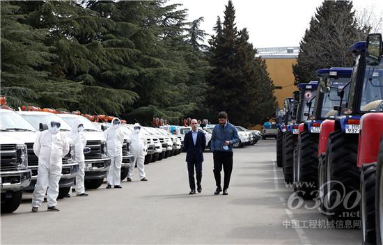 在独联体国家防疫启动会现场,雷沃拖拉机搭配喷药机亮相大会。在后续城市防疫工作中,60台雷沃拖拉机将承担起该城市道路的消毒工作。这是雷沃拖拉机在全球范围内继美洲区域、欧洲区域又一次扛起防疫任务。