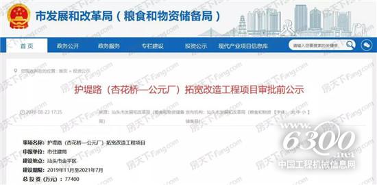 根据今年6月的一份市政府工作纪要显示,护堤路(杏花桥—公元厂)拓宽改造工程作为亚青会期间市政道路项目,要求尽快启动建设。近日,汕头市住建局计划实施护堤路(杏花桥—公元厂)拓宽改造工程,总投资77400万元,资金由地方债中统筹安排解决,建设期为2019年11月至2021年7月。该项目现正进行投资审批公示。