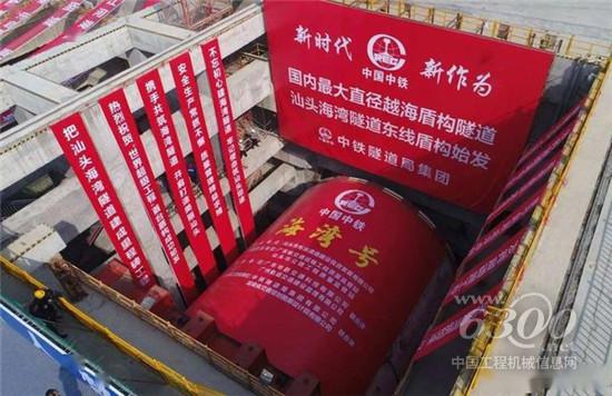汕头海湾隧道东线盾构机(首台),由中铁隧道局集团全球采购招标,由德国海瑞克公司中标制造,针对汕头海湾隧道的特殊地质条件“量身定制”。盾构刀盘直径15.01米,相当于五层楼高度,全长130米,总重4600吨,总功率10800千瓦,有上万个零部件组成。2017年8月7日,该盾构机完成制造顺利下线,从完成设计到建成用时13个月。2017年12月26日,汕头海湾隧道东线盾构机成功始发。