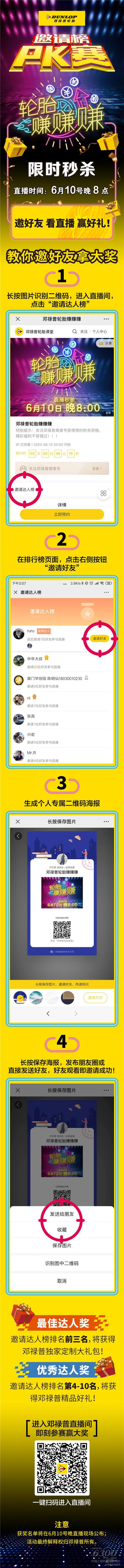 与以往相同,此次钜惠狂欢依然将面对全体系的轮胎经销商开放,并有达人PK赛、抽豪礼等花式福利。邀请的好友越多,获奖几率越大。