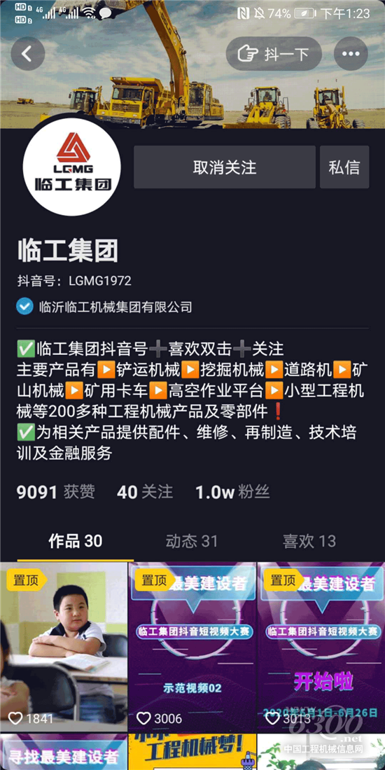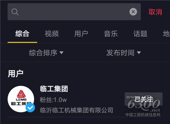 第一步:打开抖音APP,搜索临工集团抖音号