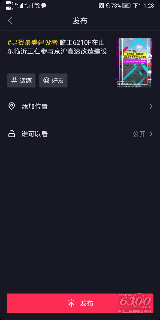 第五步:给作品添加标题并@临工集团,发布即可。