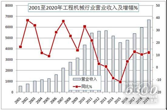2019年,工程机械行业在历经五年之久的发展低潮以及2017年至2018年快速恢复和增长后,迎来了稳定发展的2019年,面对更加复杂的国际环境和国内经济下行压力较大的局面,工程机械行业借助稳定向好的宏观经济和持续稳定的固定资产投资,行业转型升级的成果进一步显现,在市场二手设备加快更新、大气污染防治环保政策对市场产生的积极作用、“一带一路”建设拉动出口增长,以及建设施工领域新技术新工法的推广应用等众多因素叠加影响下,工程机械市场再现高速增长。经协会统计汇总,在扣除不可比因素、重复数据和非工程机械产业营业收入之后,2019年全行业实现营业收入6681亿元,比2018年增长12%。