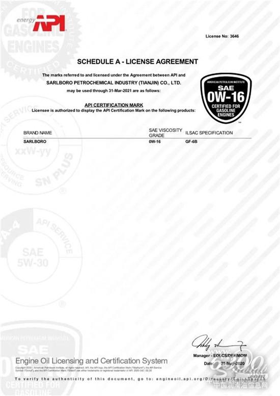 近日,圣保路推出的新品SP/GF-6 0W-16醇酯全合成汽油机油通过ILSAC GF-6B规格认证 ,代表了圣保路已经具备了研发可提高燃油经济性的低粘度等级润滑油产品的行业领先水平。