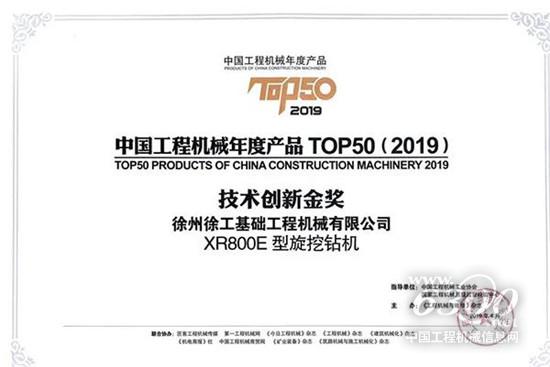 徐工XR800E凭借独有的大吨位创新技术,荣膺“中国工程机械年度产品TOP50技术创新金奖”。