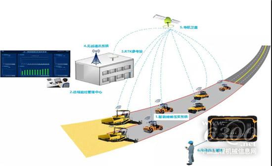 本次参与施工的三一路机无人摊压协同施工机群包含2台无人驾驶摊铺机、2台无人驾驶轮胎压路机、3台无人驾驶双钢轮压路机与1个无人驾驶监控室。机群主要采用摊铺机智能施工技术、机群协同施工技术、群控安全技术与控制平台技术四大关键技术实现对设备的精准控制。
