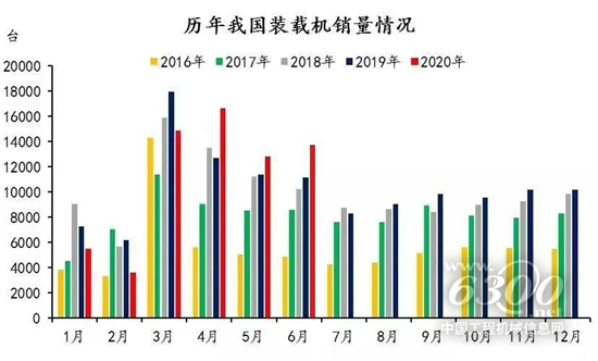 据中国工程机械工业协会统计,2020年6月纳入统计的23家装载机制造企业共销售各类装载机13111台,同比增长17.8%。其中:3吨及以上装载机销售12281台,同比增长16.7%。自今年3月开始,装载机销量开始强势反弹,连续4月销量过万,连续3月呈同比增长趋势。2020年1-6月,共销售各类装载机66823台,较去年的66555台同比增长0.4%。
