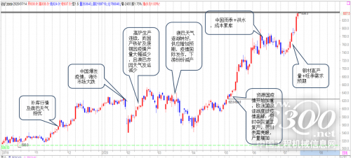 在节目中,李殿春老师首先对矿石行情进行了简单的回顾,介绍了2019年底至今的矿石行情走势,并对各个重要节点的事件及影响进行了深度解读。殿春老师将这段时期的行情走势分为以下如图的7个阶段,并针对每个阶段进行了详细的解读。