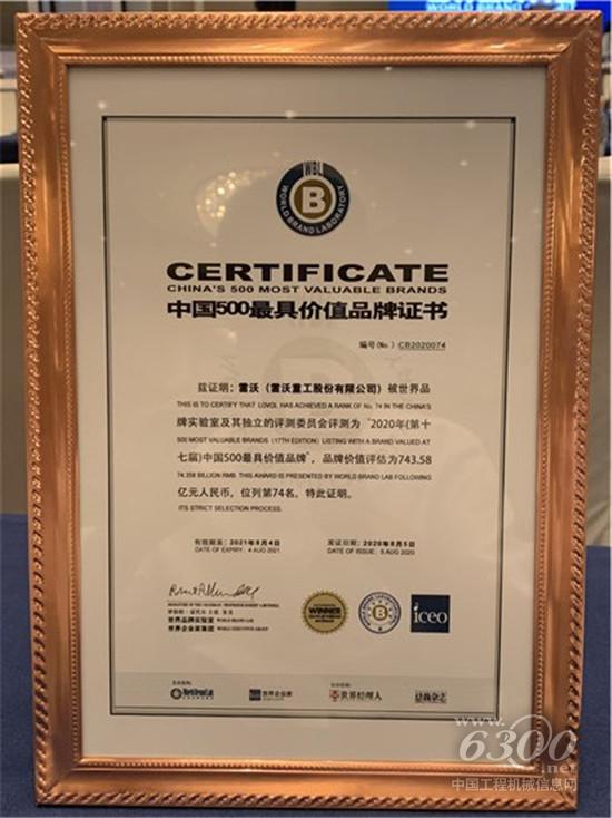 8月5日,世界品牌实验室(World Brand Lab)在北京发布“2020年中国500最具价值品牌”排行榜。在这份基于财务数据、品牌强度和消费者行为分析的年度报告中,雷沃品牌价值再创新高,以743.58亿元排行第74位,连续12年位居农业装备行业第一。面临国内外复杂严峻的经济形势,特别是在当前经济下行压力加大的大环境下,雷沃品牌价值逆势跃升,展现出十足的品牌韧性和活力。
