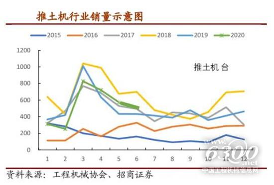 1-6月推土机累计销量达3182台,同比下降3%。其中国内销量2385台,同比增长2.3%。出口销量797台,同比下降17.3%。