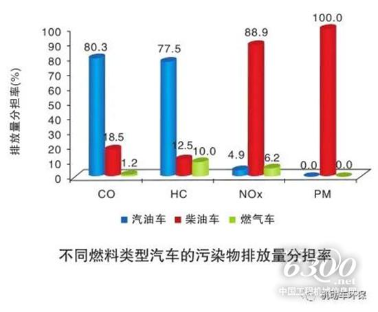 按燃料分类,柴油车排放的氮氧化物(NOx)接近汽车排放总量的90%,颗粒物(PM)占比超95%;汽油车一氧化碳(CO)排放量超过汽车排放总量的80%,碳氢化合物(HC)排放量超过汽车排放总量的75%。