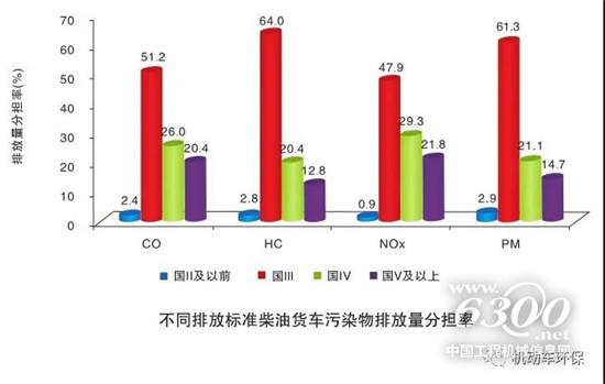 其中,国III排放标准的柴油货车一氧化碳(CO)、碳氢化合物(HC)、氮氧化物(NOx)、颗粒物(PM)排放量占比均高于其他排放标准的柴油货车。