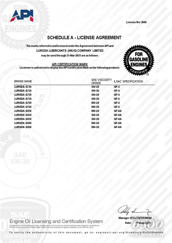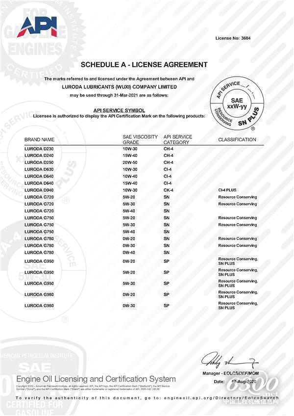 近日,路路达联合中国人民解放军后勤工程学院共同研发下,成功突破一系列难题,完成新一轮的产品升级顺利通过API SP产品认证,路路达产品成功迈入另一个里程碑。此次通过API SP 产品为路路达G980、G950,满足全新标准并兼具燃油经济性和节能环保要求,卓越的油泥控制。