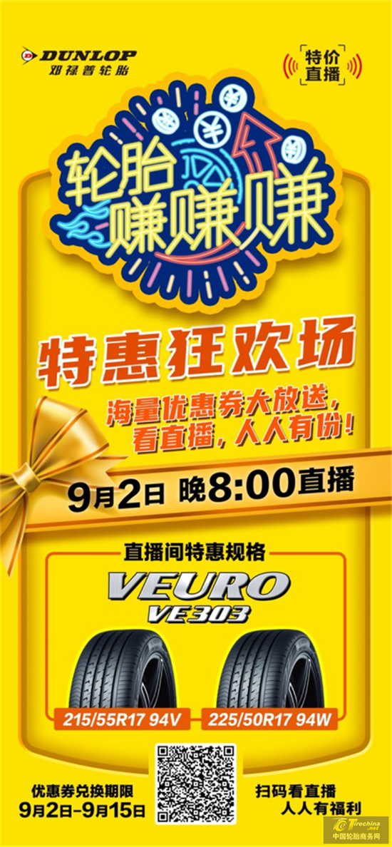 9月金风送爽,邓禄普轮胎线上直播持续发力,为各大商户倾情献上金秋福利。9月2日晚8点,邓禄普轮胎开启秋季直播特惠专场,特别推出海量优惠券,进入直播间的商户朋友,人人有份,多种热卖畅销款轮胎优惠券秒不停,好价汇聚,尽享超值优惠。
