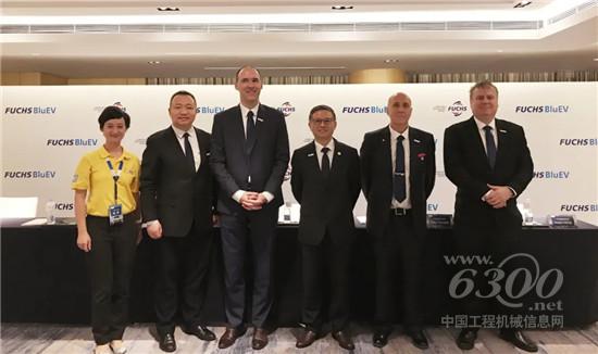 福斯中国首席执行官朱庆平(右三)、技术副总裁科睿思 Kris Van Gasse(左三)、车油OEM销售副总裁谢新军(左二)、车油OEM技术副总裁 Gary Hooper(右二)、高性能润滑脂业务发展总监 Anton Allner(右一)与中国润滑油信息网副总经理朱文璇女士(左一)亲切合影